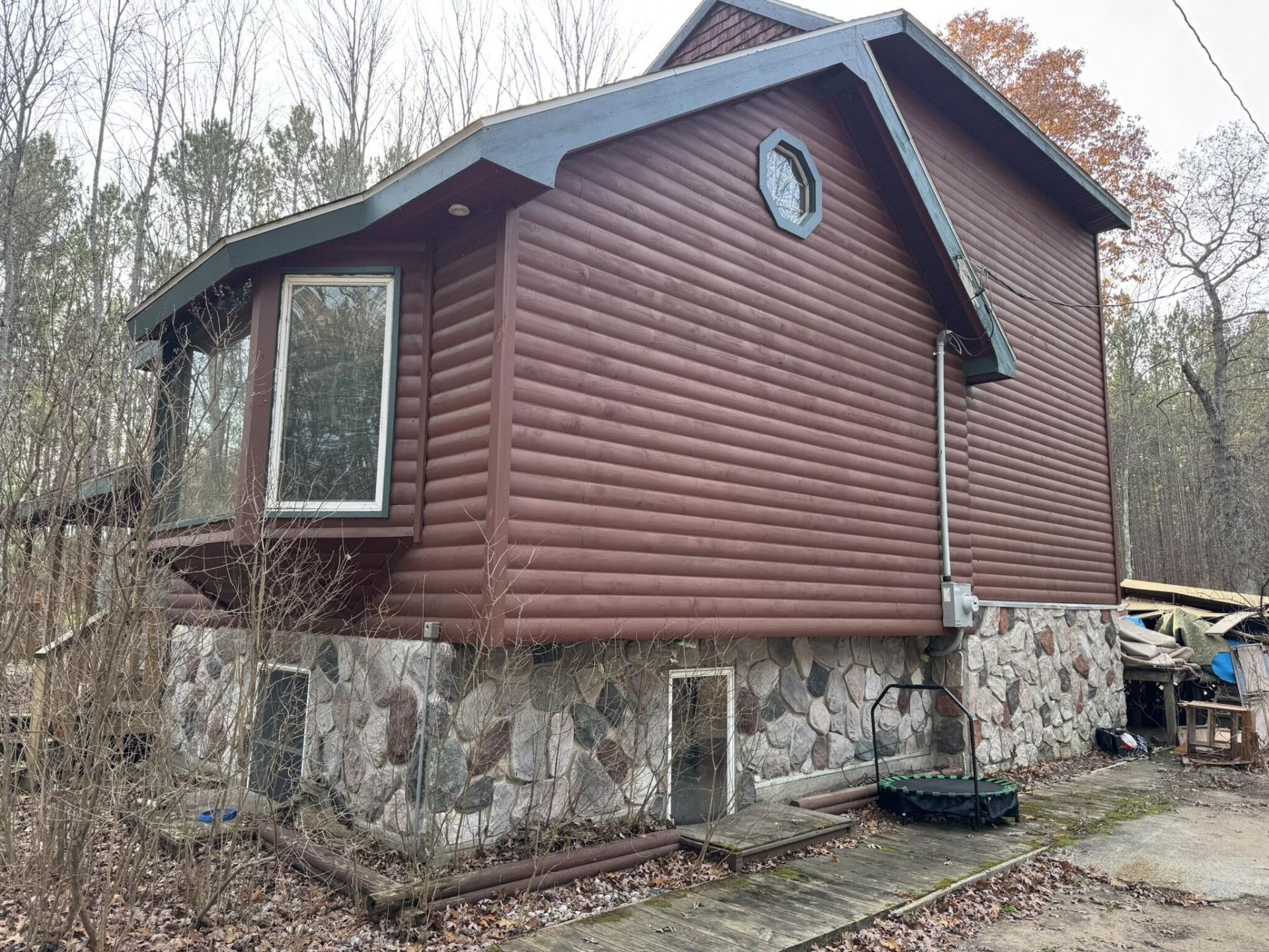 This 4-bedroom, 2-bath home offering over 2,000 sq ft of living space is located on 1.23 wooded acres. Features include tongue-and-groove pine interior, covered front porch, and large rear deck. Located near the Big Manistee River at Highbridge with Federal Land to the South and directly across the road, providing excellent access to outdoor recreation. Property includes an 48x32 garage with three roll-up doors and a 48x12 loft, ideal for storage, hobbies, or vehicles. Home needs clean-out and updates and is being sold AS IS. Great opportunity for renovation, recreational use, or investment in a desirable up-north setting.