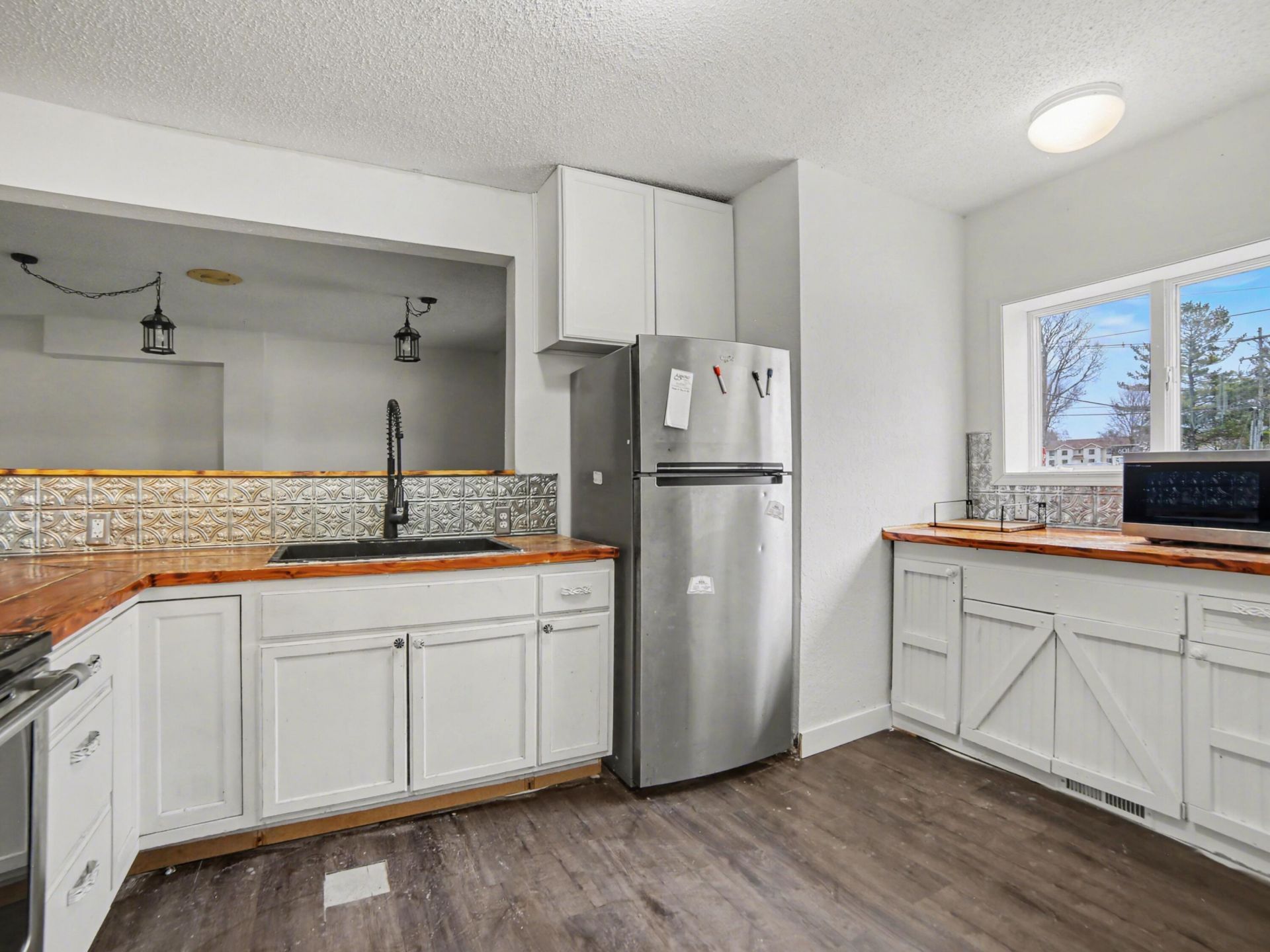 Just two blocks from downtown Hart, this charming home sits on a spacious corner lot with room to enjoy. The fenced-in backyard is perfect for relaxing or entertaining, featuring a fire pit, raised garden beds, a 25 enclosed dog run, and an 18x20 outbuilding, plus ample parking. Inside, the open-flow main living area feels warm and inviting, with high ceilings and original wood details, including a beautiful sweeping staircase that adds timeless character. The home offers four spacious bedrooms, including a nursery with direct access from the primary, along with two half baths and a newly renovated full bath. A bright sunroom provides additional living space filled with natural light. Located directly across from John Gurney Park, youll enjoy easy access to walking trails, a playground, and water access just steps from your door.