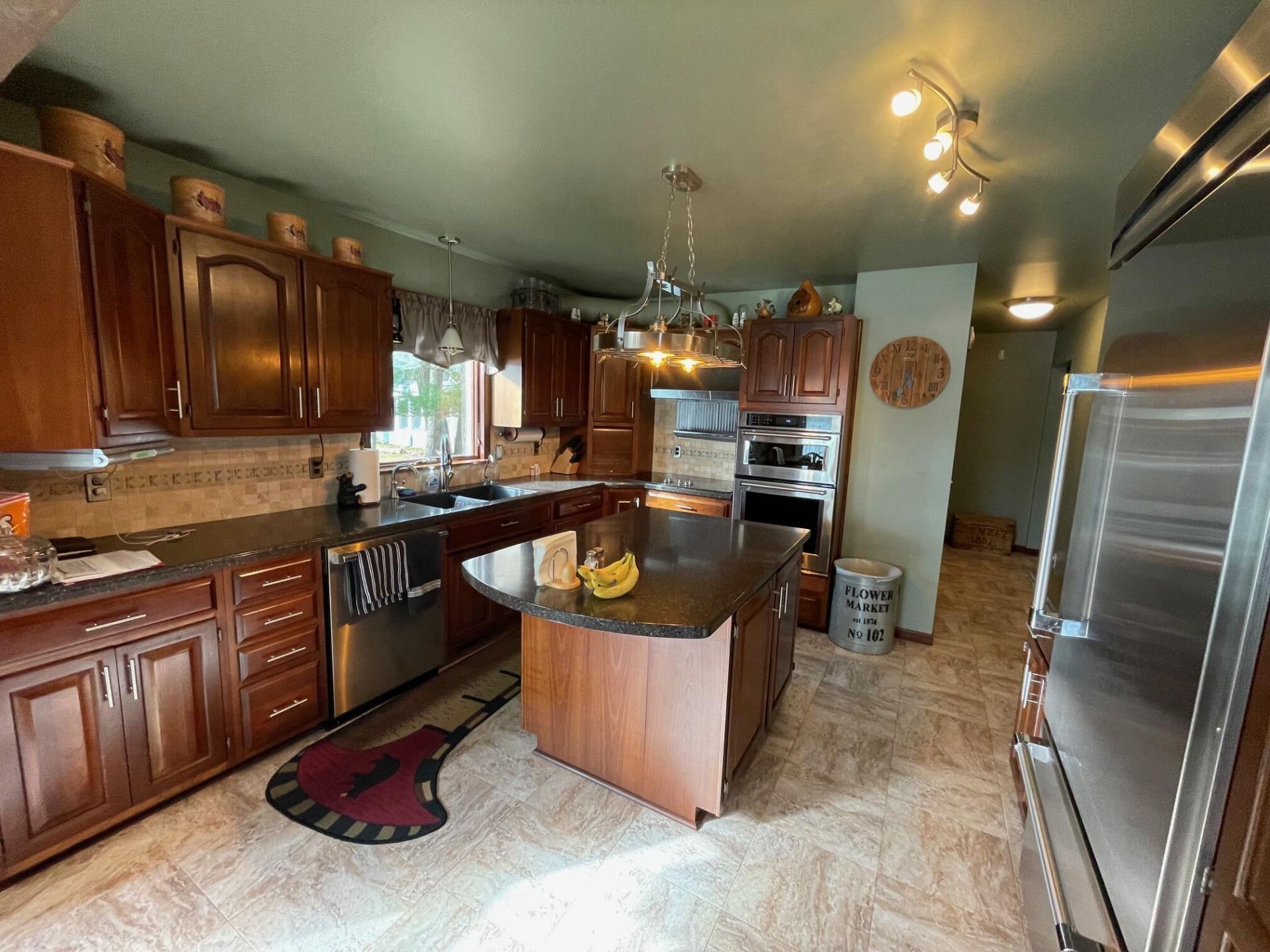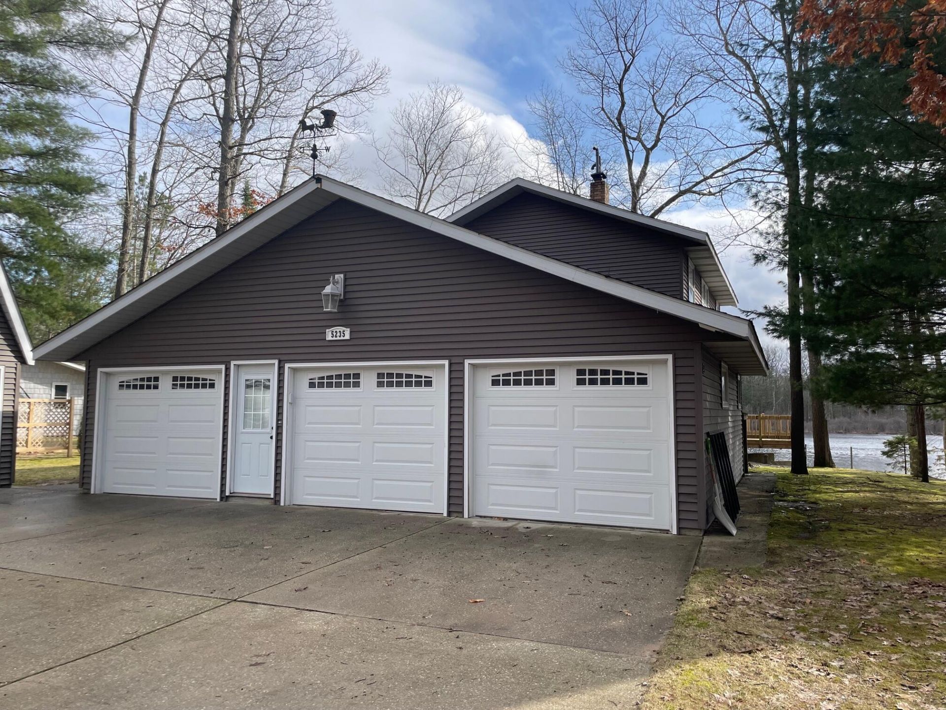 Welcome to Lakefront Living with this meticulously well maintained 4 Bedroom 2 bath home with 75 feet of frontage on no wake electric motor only Seaman Lake. Home features a fieldstone fireplace on the lake side with sliders opening up to the large deck area.. Beautiful kitchen with cherry cabinets, corian countertops and center island. Large Mudroom off the 3 car attached garage. Upper level has a huge primary bedroom with walk in closet and attached bath with shower and soaking tub. Lower level walk out basement has a second fireplace and second kitchenette area that opens to a lakeside patio. Sauna and pontoon will stay with the home. Heated 3 car attached garage and an additional storage barn, concrete driveway, extra storage closets on every level. Close to all sports Big Bass and trails. This home has been so well cared for and has so much to offer, Welcome Home this lakefront setting will not disappoint!