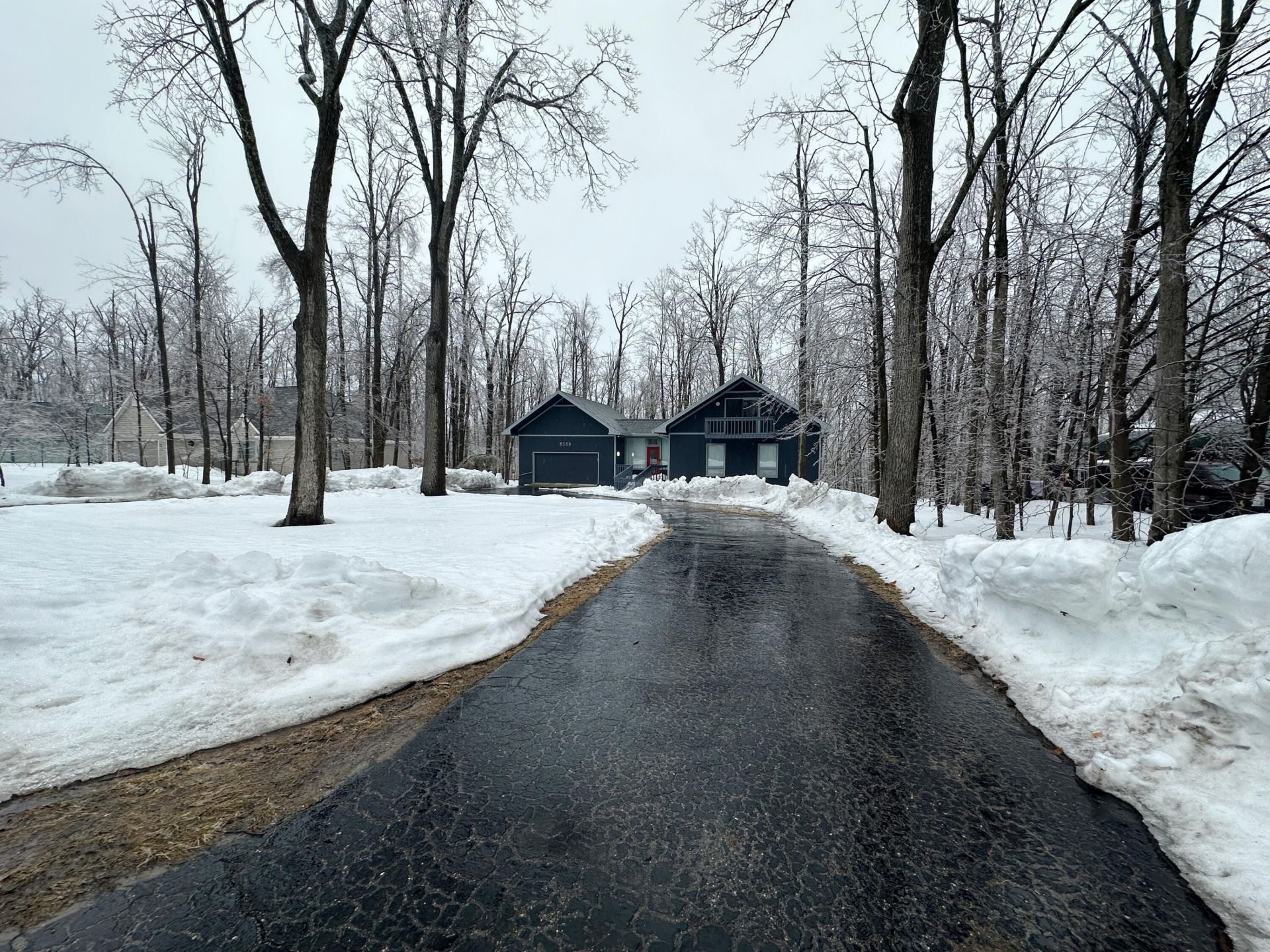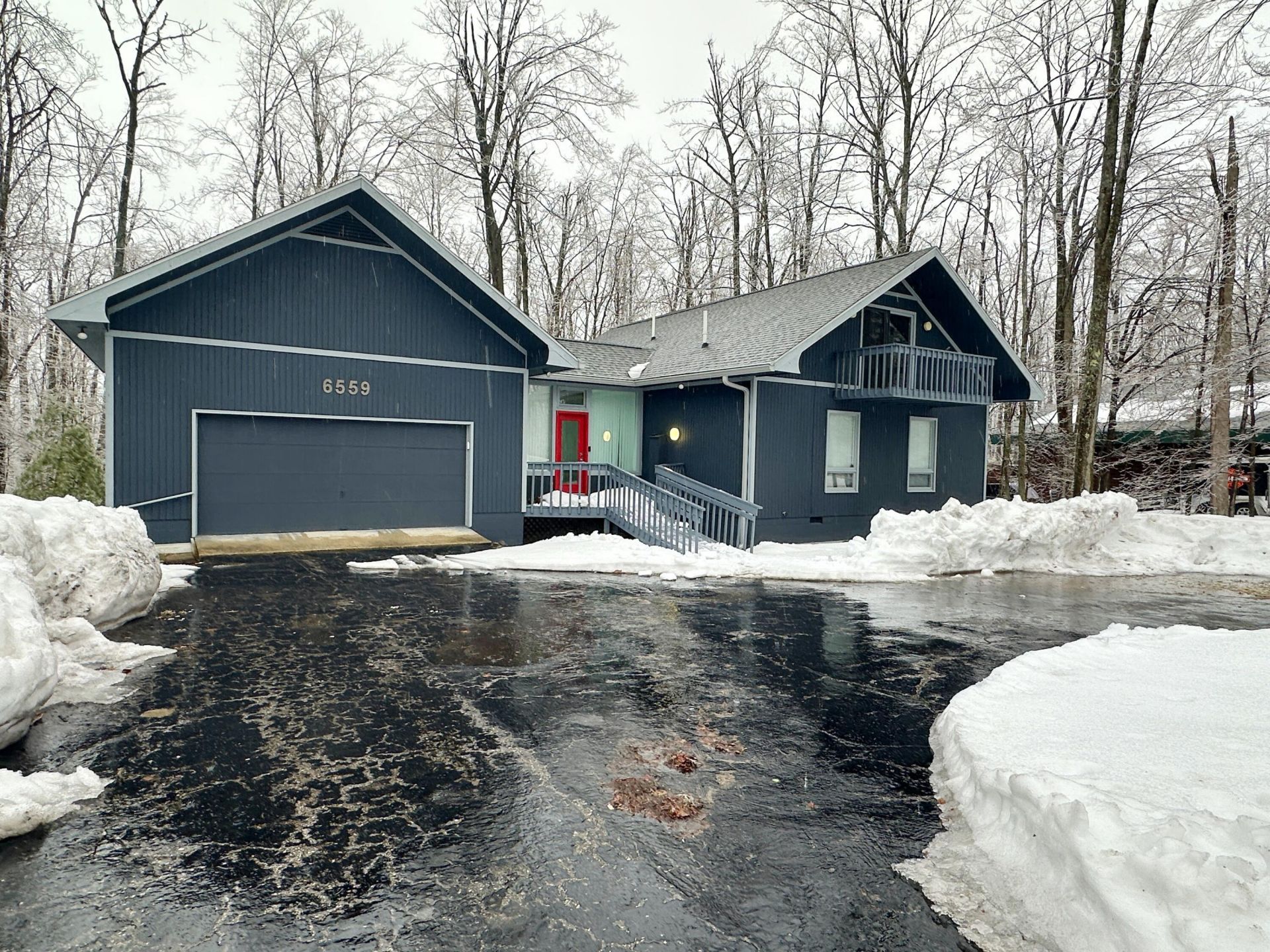 Large Michaywe home on a quiet cul-de-sac set in the wood. This 3-bedroom 3-full bath home is situated on three levels, including a walk-out basement/private entrance. Main level features of master en-suite with huge bathroom, large living room with a fireplace and beautiful views of nothing but trees out the back. Upper-level features 2 large bedrooms, both w/ balconies & a full-size bathroom. The walkout basement features; large family room, a studio apartment complete w/ kitchen and bathroom and large cedar lined closet. Exterior of home features a 2-car garage, huge back deck, front porch, and circular driveway. Michaywe amenities including restaurant, indoor/outdoor pool, Opal Lake beach and X-Country skiing. Three golf courses within 2 miles. Privacy and convenience at its finest.
