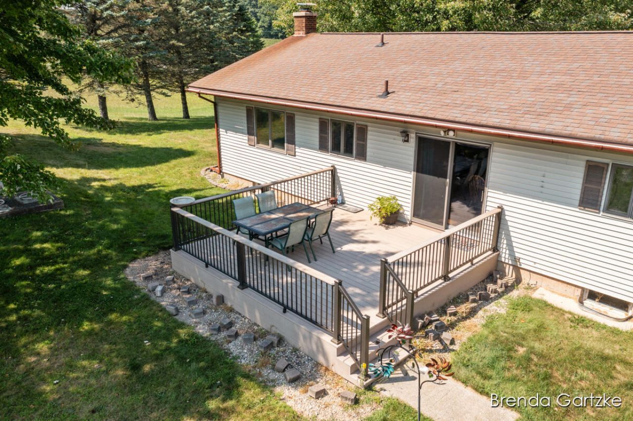 Start your hobby farm and experience tranquility in this delightful 3-bedroom, 2-bath Ranch set on 5 scenic acres. EFFICIENCY heating and cooling with dual mini split addition to the system. The home features an inviting open layout, with a bright kitchen equipped with stainless steel appliances & a pantry, seamlessly connecting to the dining area & a spacious living room, highlighted by a large window that floods the space with natural light. Retreat to the generous bedrooms, including a main floor primary, an updated bath featuring a luxurious walk-in shower. The lower level offers a cozy fireplace, a recreation room, & generous storage. Outside, enjoy a maintenance-free deck, lush fruit and shade trees, & three pole barns, one with horse stalls & a lush pasture that can adjoin. A frost-free hydrant in the stable The insulated, finished garage that is wired for a heater and offers a raised drop room for boots & coats. Embrace nature and wildlife in this perfect sanctuar